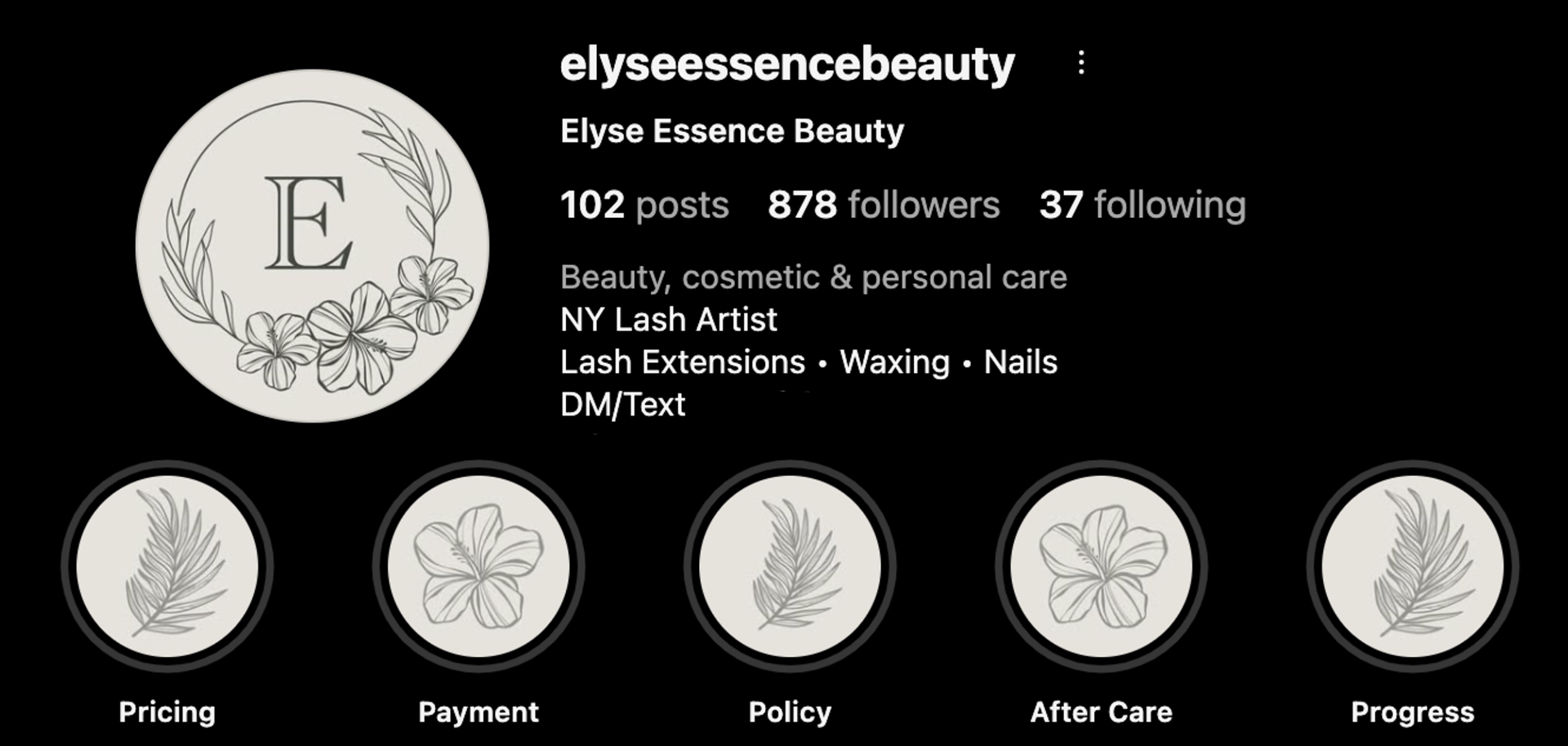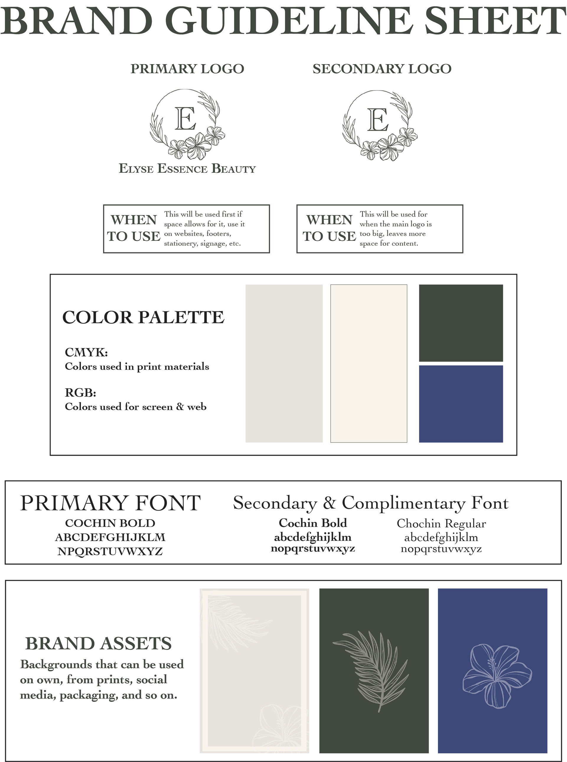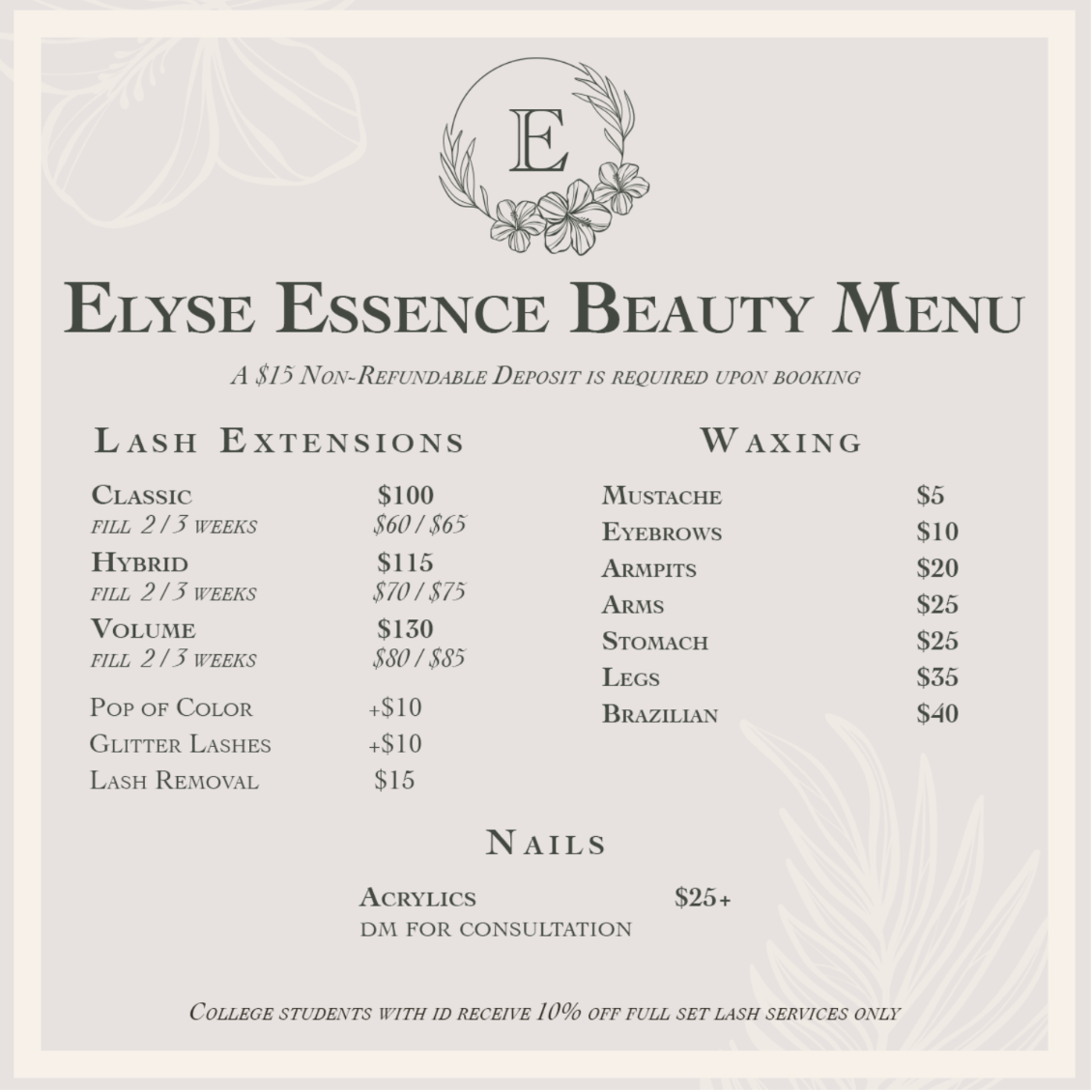 Elyse Essence Beauty is a small business owner who specializes in eyelash extensions, waxing, and beauty. She wanted a clean, elegant, and fresh look to resemble a spa getaway. She wanted minimal colors and a simple look.
